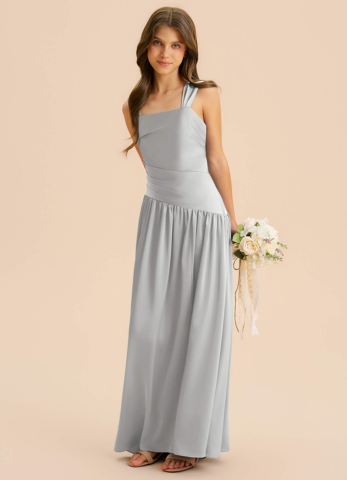 A-Linie Plissee Stretch-Satin Kleid Silber