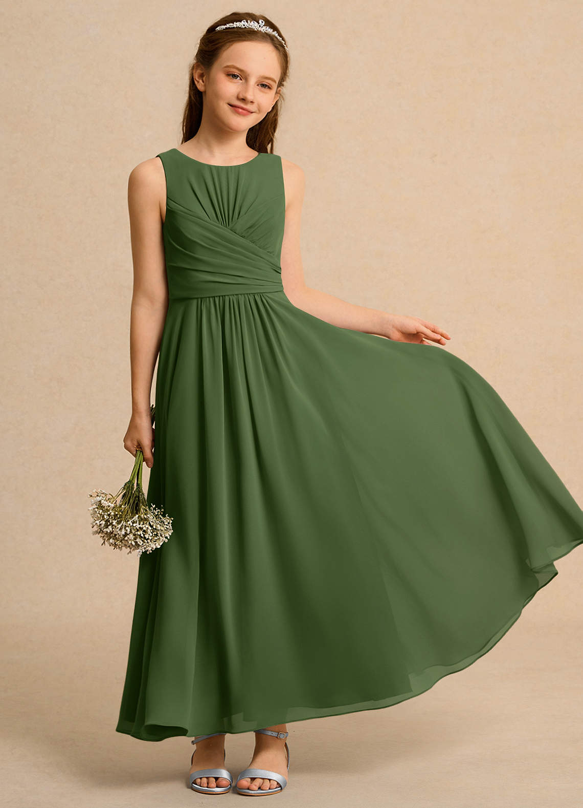 A-Linie Plissee Chiffon Kleid Olivgrün
