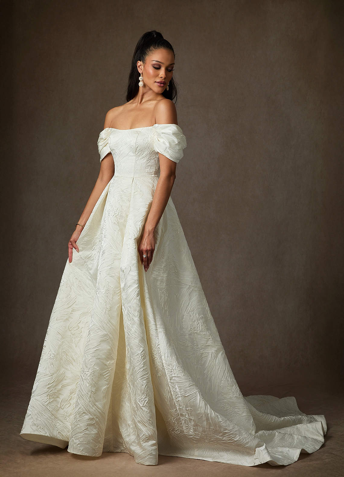 Ballkleid Blumen-Jacquard Kleid Antikweiß