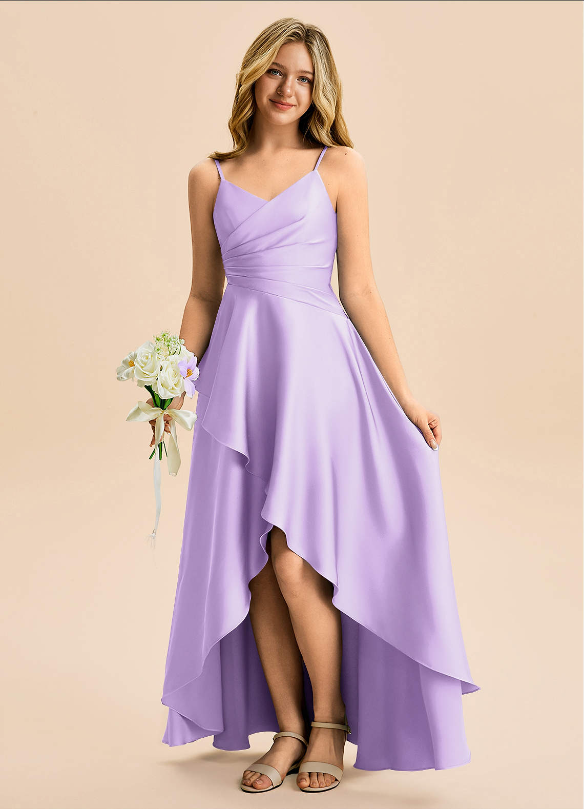 A-Linie Plissee Stretch-Satin Kleid Flieder