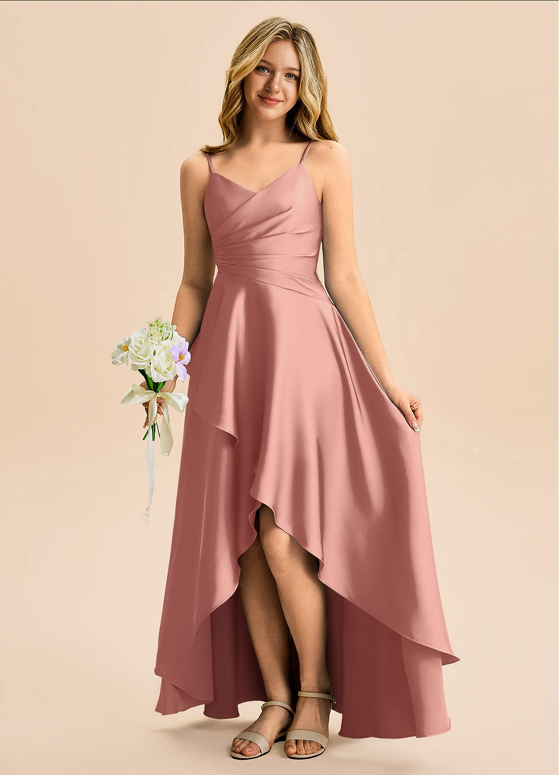 A-Linie Plissee Stretch-Satin Kleid Rosettenrosa