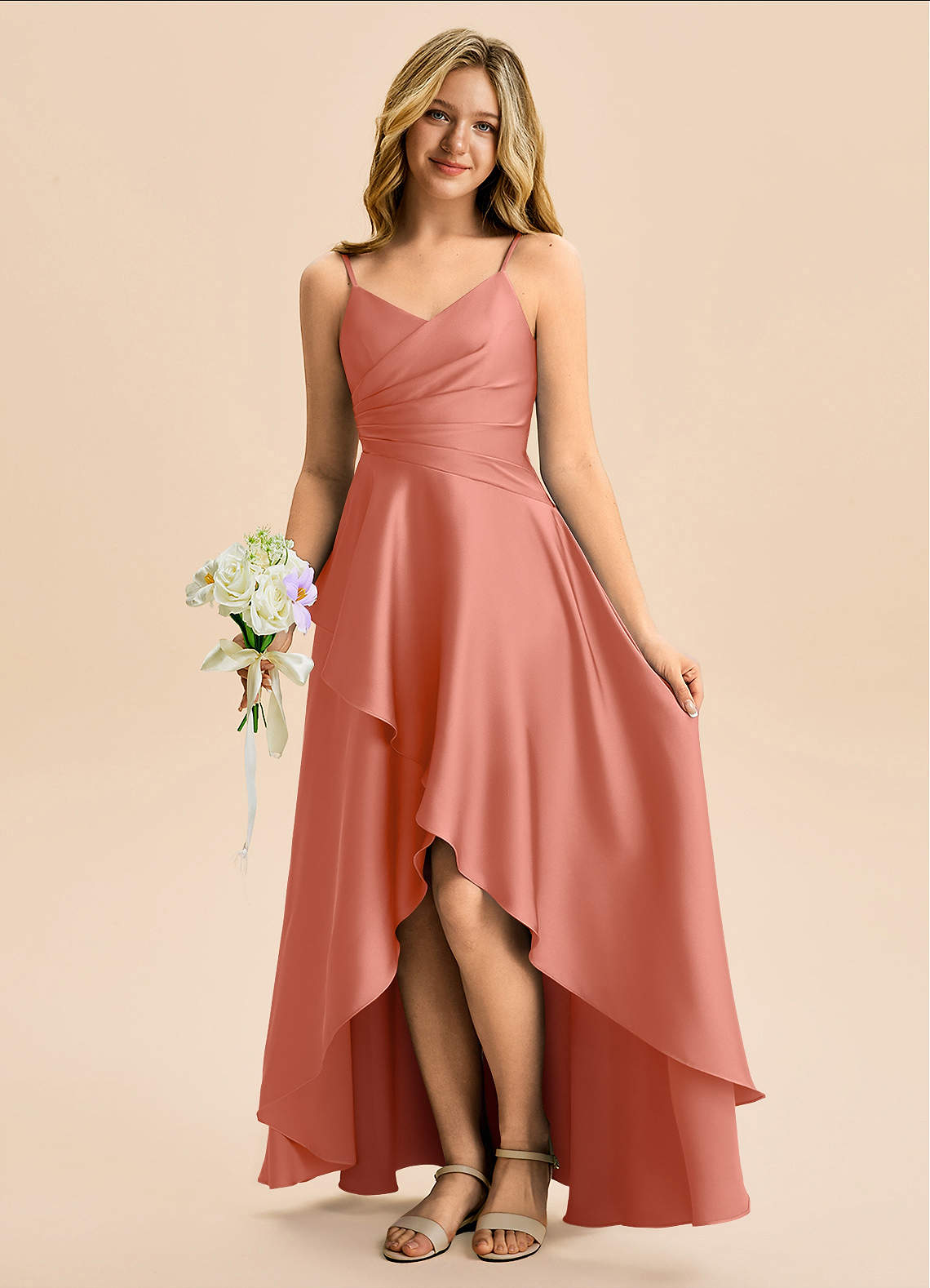 A-Linie Plissee Stretch-Satin Kleid Lachsrosa