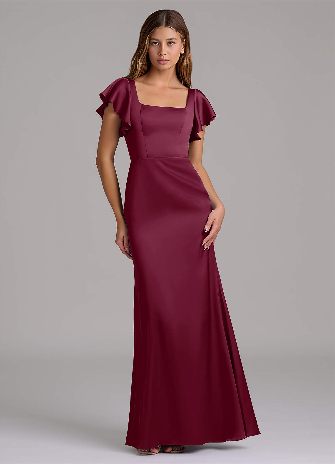 Meerjungfrau-Linie Rechteckiger Ausschnitt Stretch-Satin Kleid Maulbeerrot