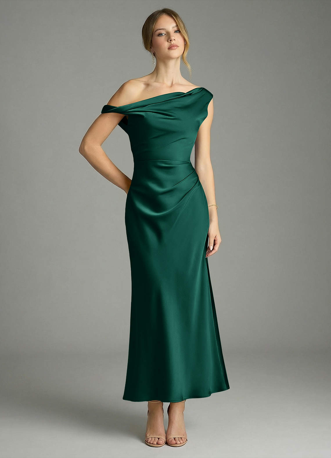 Meerjungfrau-Linie Schulterfrei Stretch-Satin Kleid Smaragd