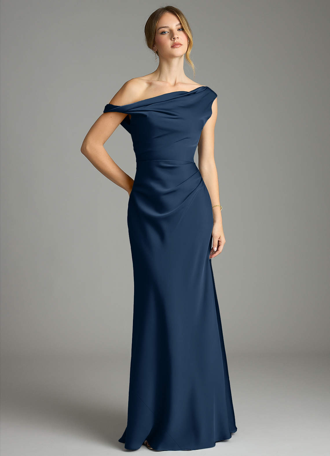 Meerjungfrau-Linie Schulterfrei Stretch-Satin Kleid Dunkelmarine