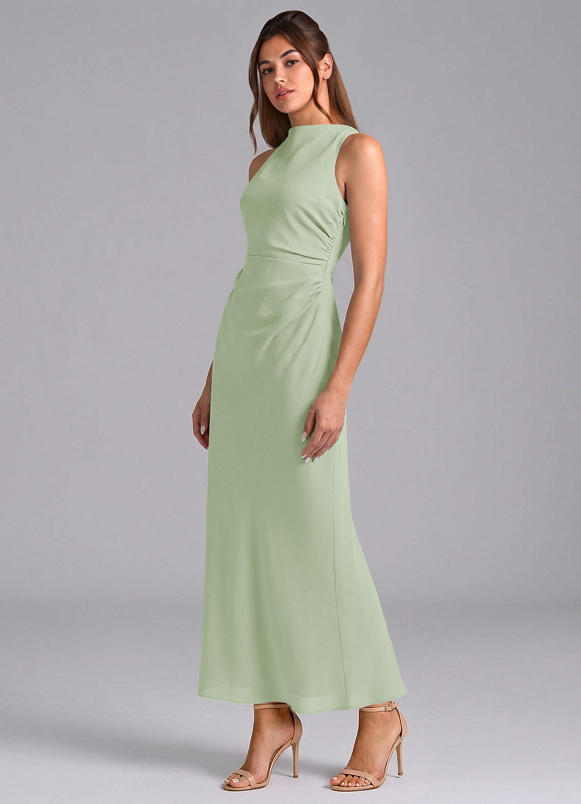 Etui Plissee Chiffon Kleid Staubiger Salbeigrün