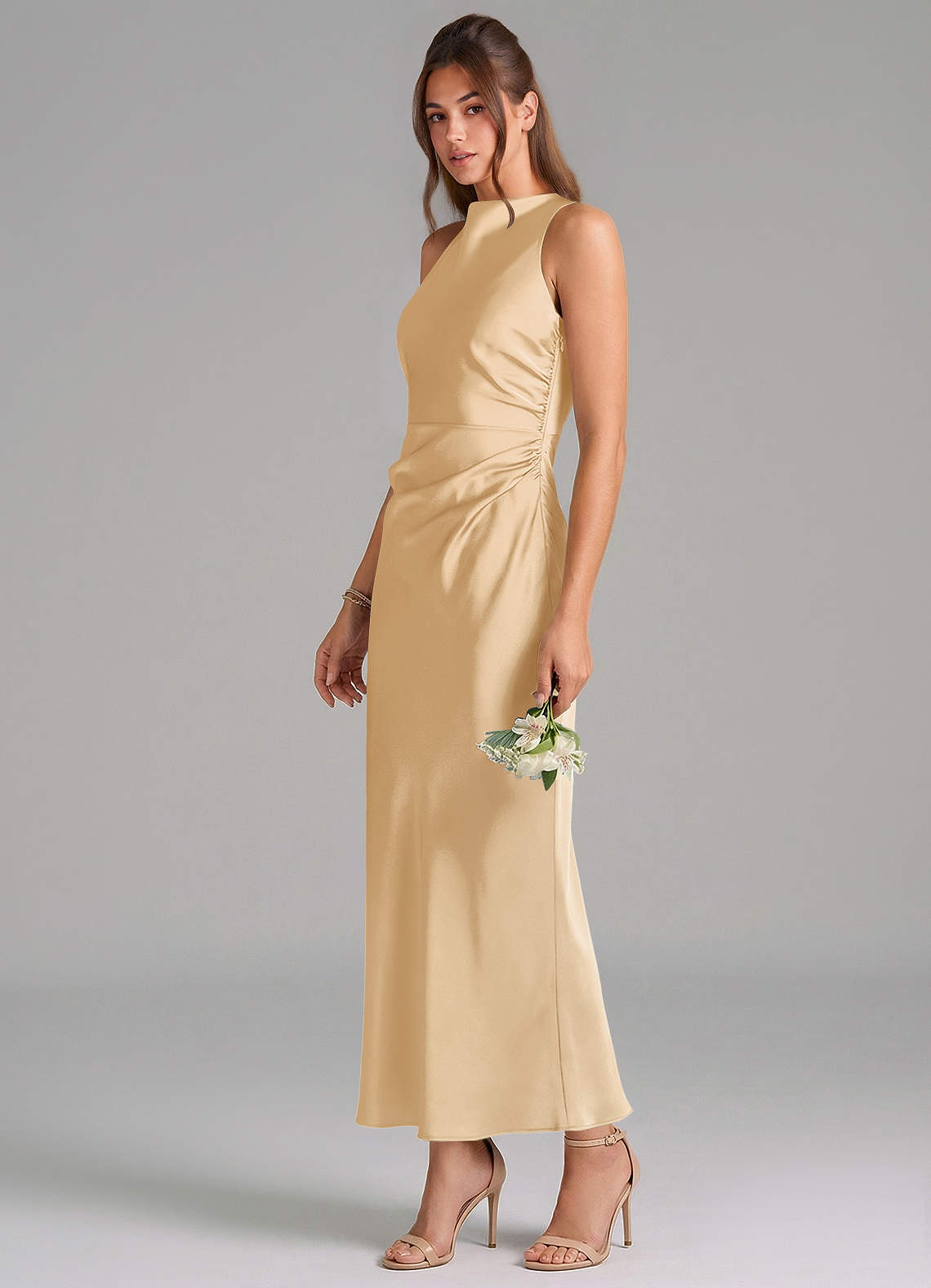 Etui Plissee Stretch-Satin Kleid Gold