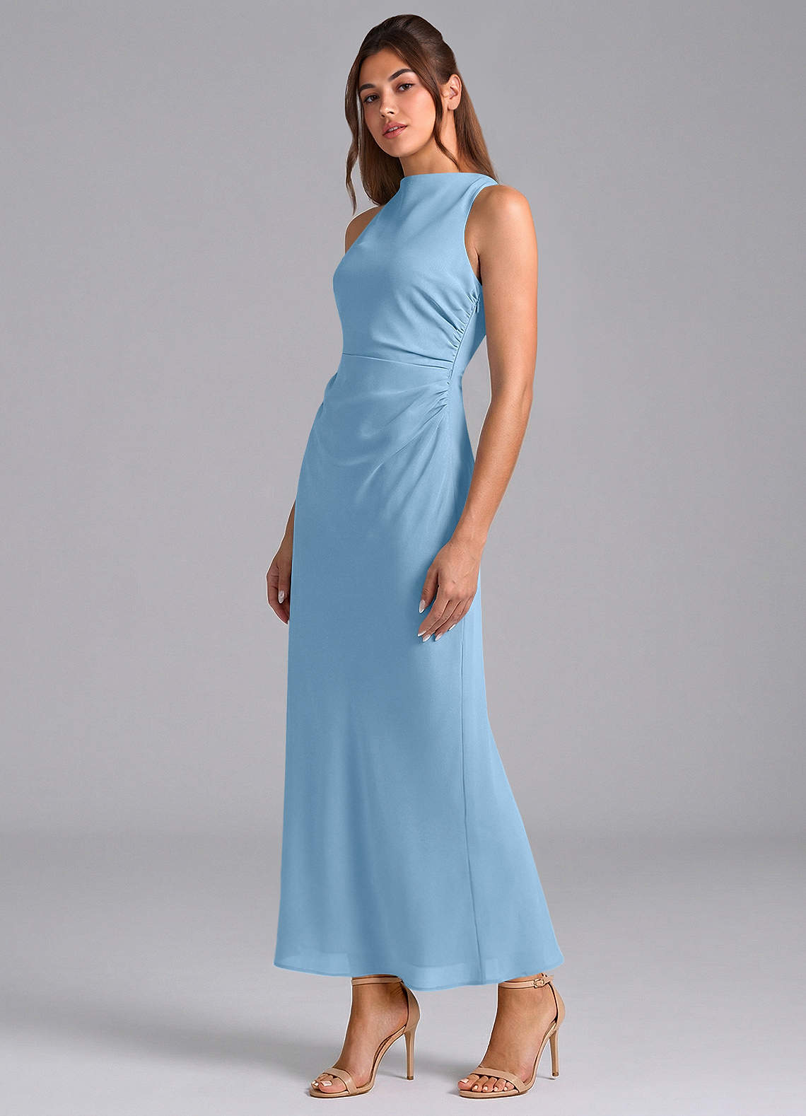 Etui Plissee Chiffon Kleid Stahlblau