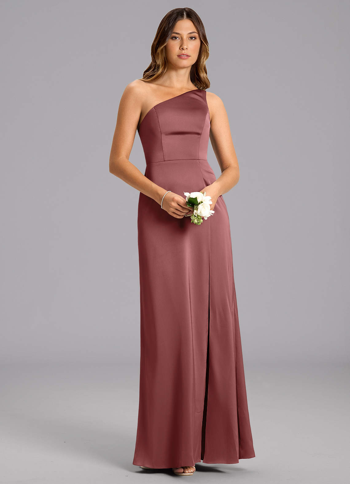 A-Linie One-Shoulder Stretch-Satin Kleid Amethyst
