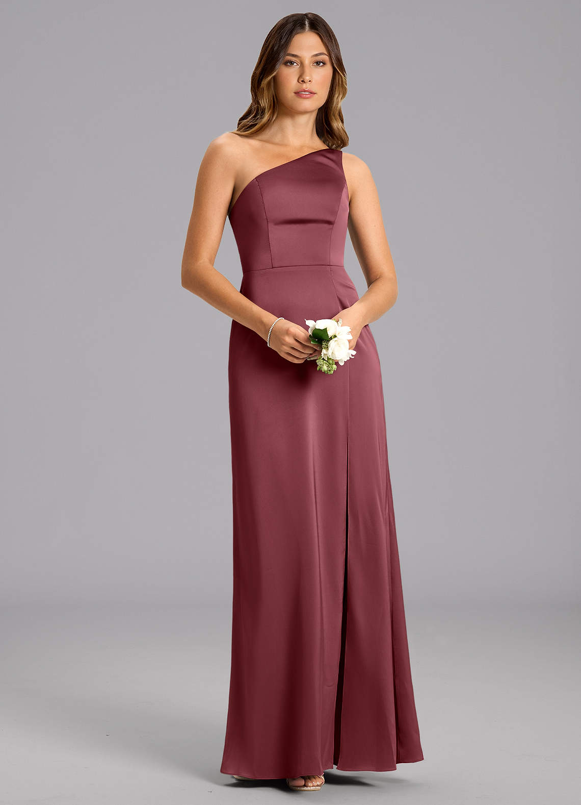 A-Linie One-Shoulder Stretch-Satin Kleid Wüstenrose