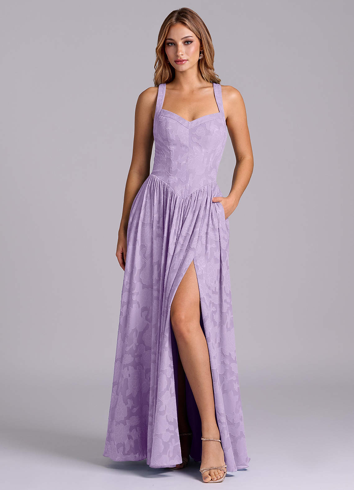 A-Linie Korsett Blumen-Burnout Kleid Flieder