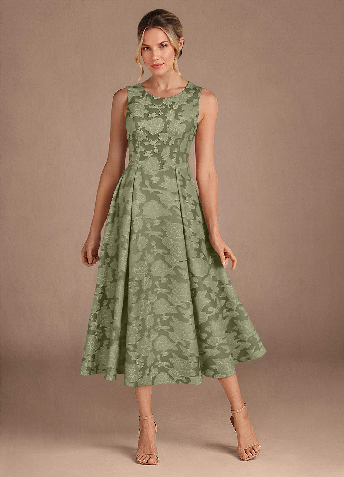 A-Linie Plissee Blumen-Burnout Kleid Pistazie