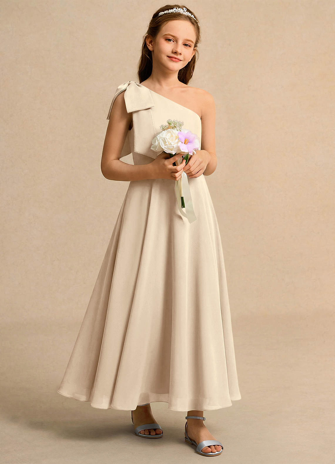 A-Linie One-Shoulder Chiffon Kleid Champagner
