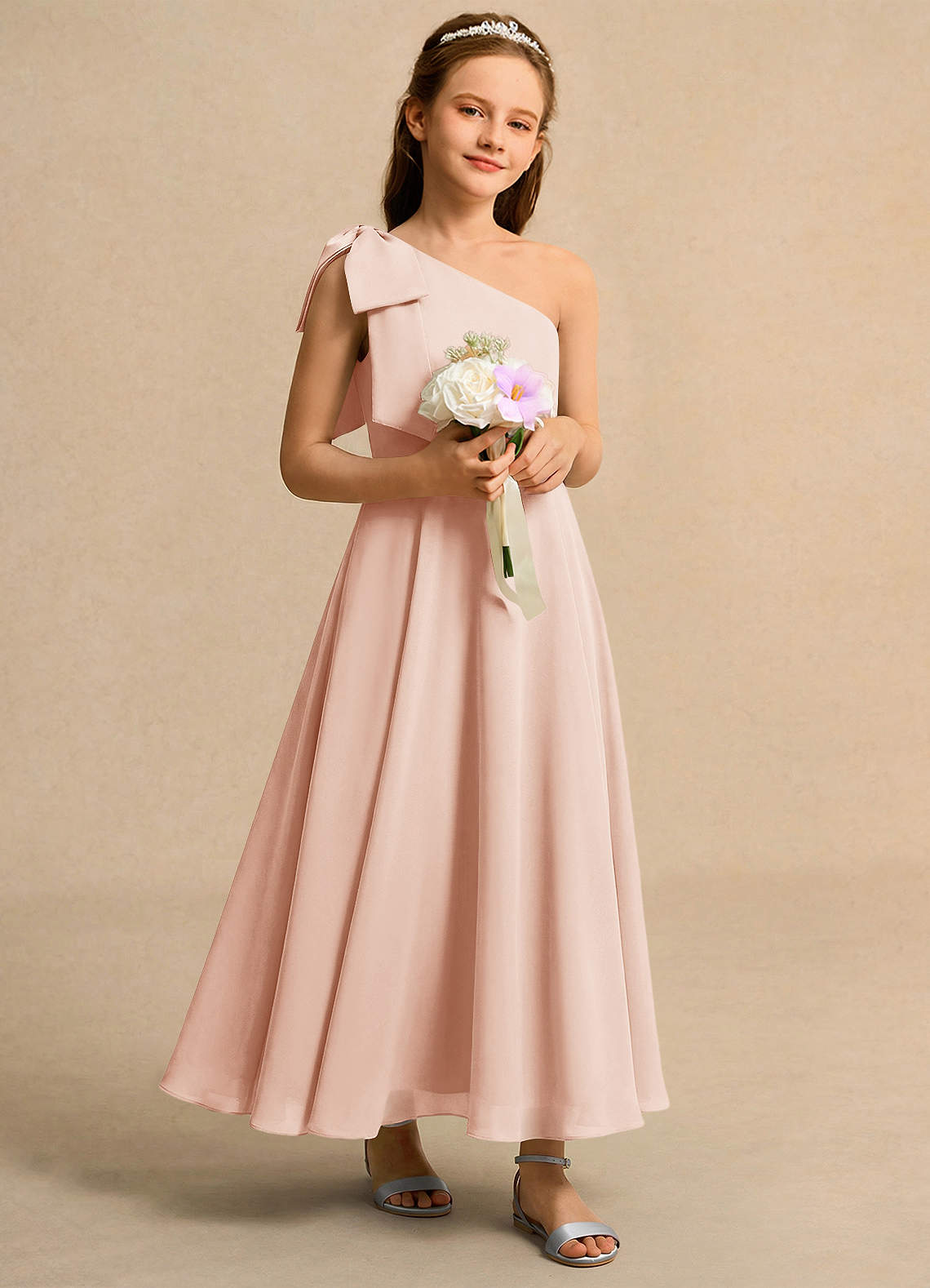 A-Linie One-Shoulder Chiffon Kleid Englisches Rosa