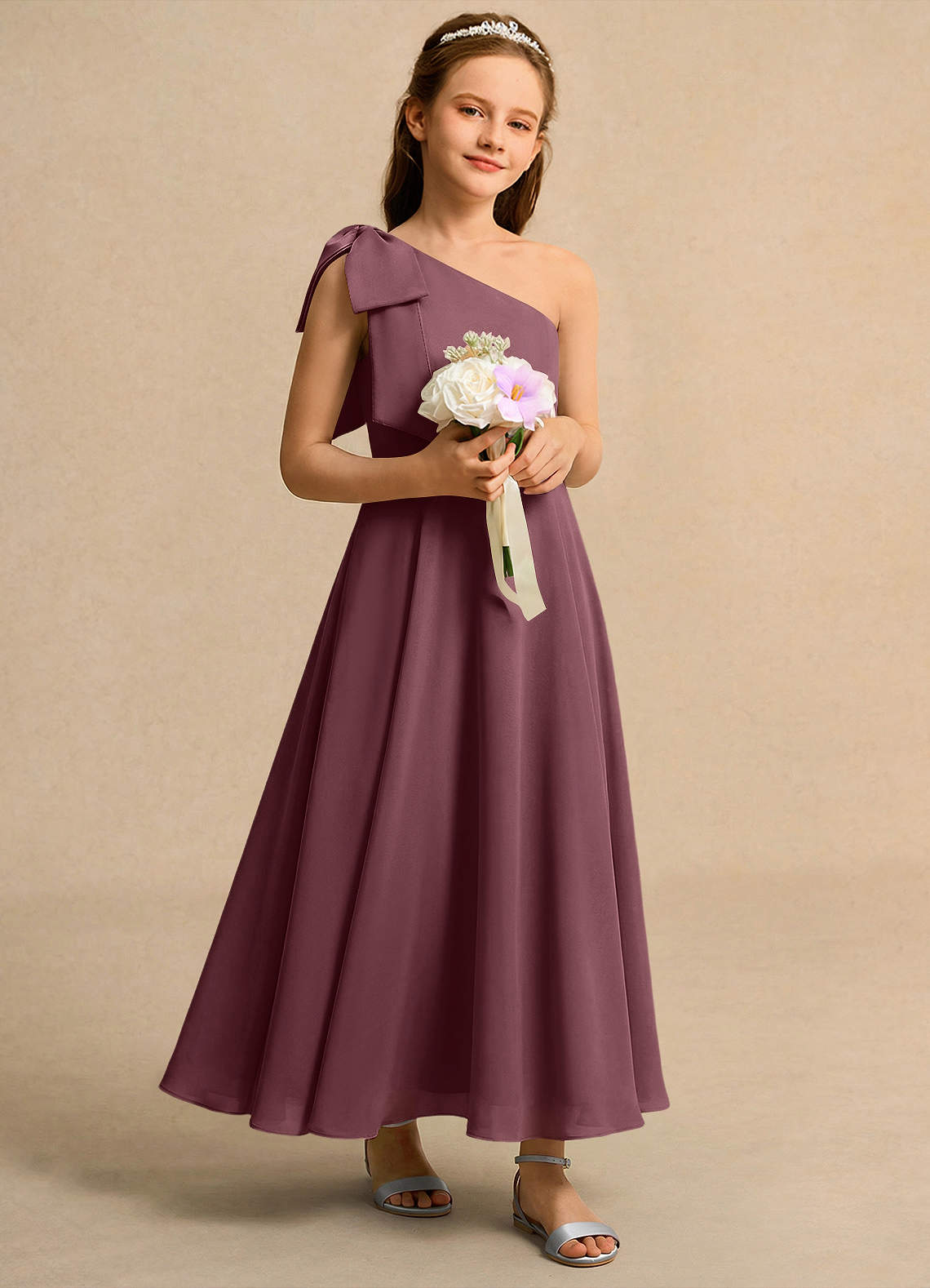 A-Linie One-Shoulder Chiffon Kleid Sangria