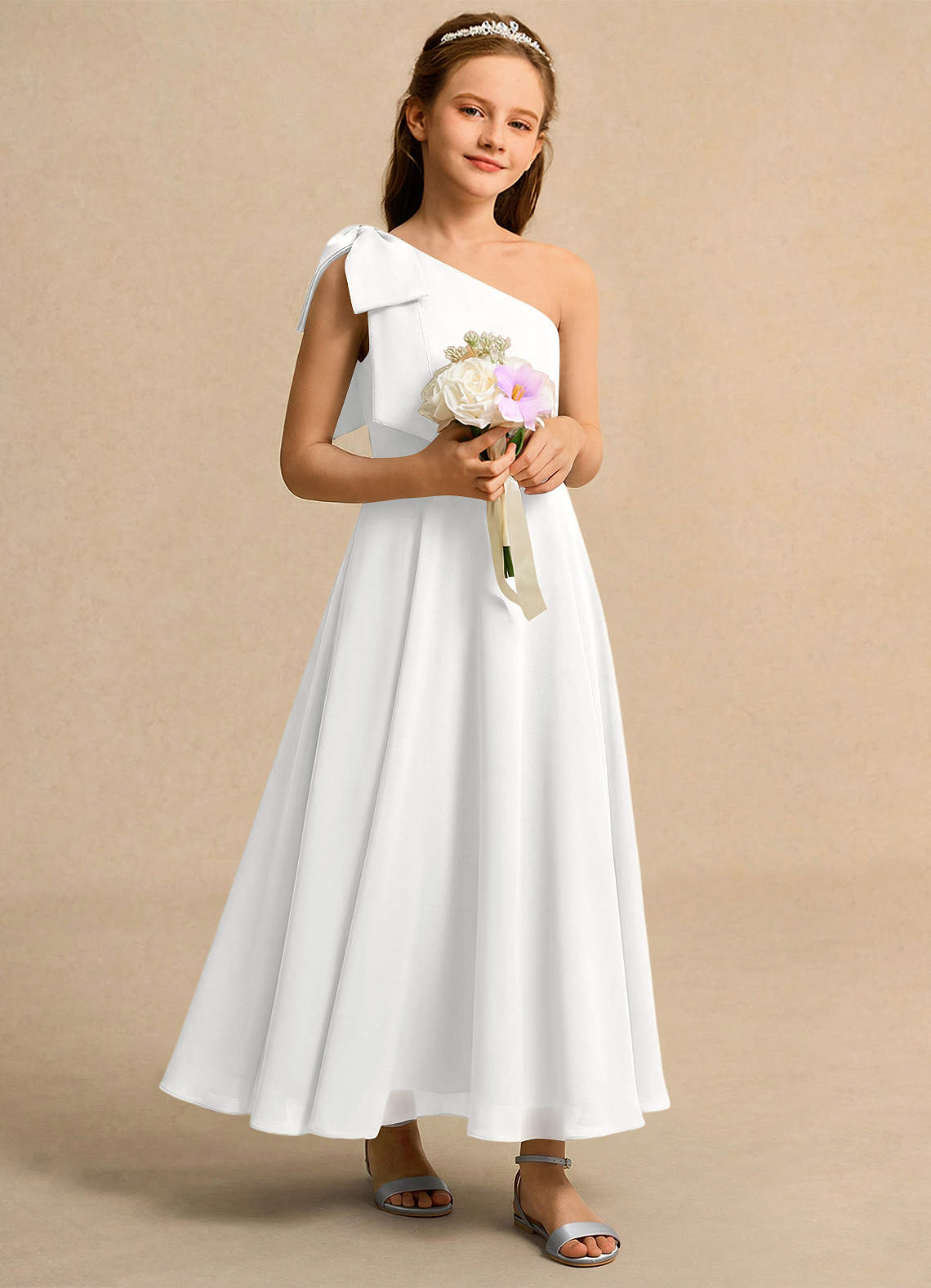 A-Linie One-Shoulder Chiffon Kleid Weiß