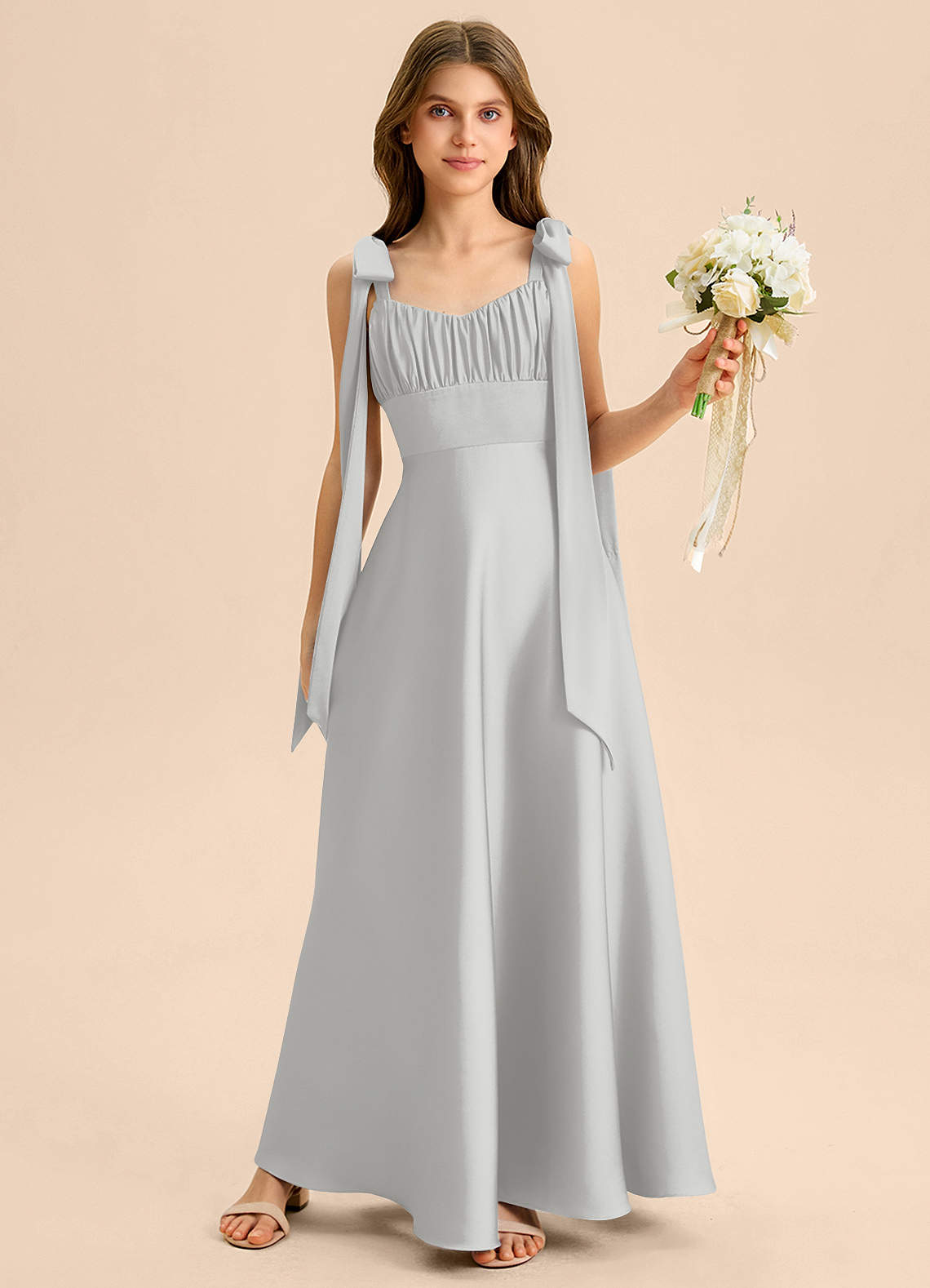 A-Linie Schleifen Stretch-Satin Kleid Silber