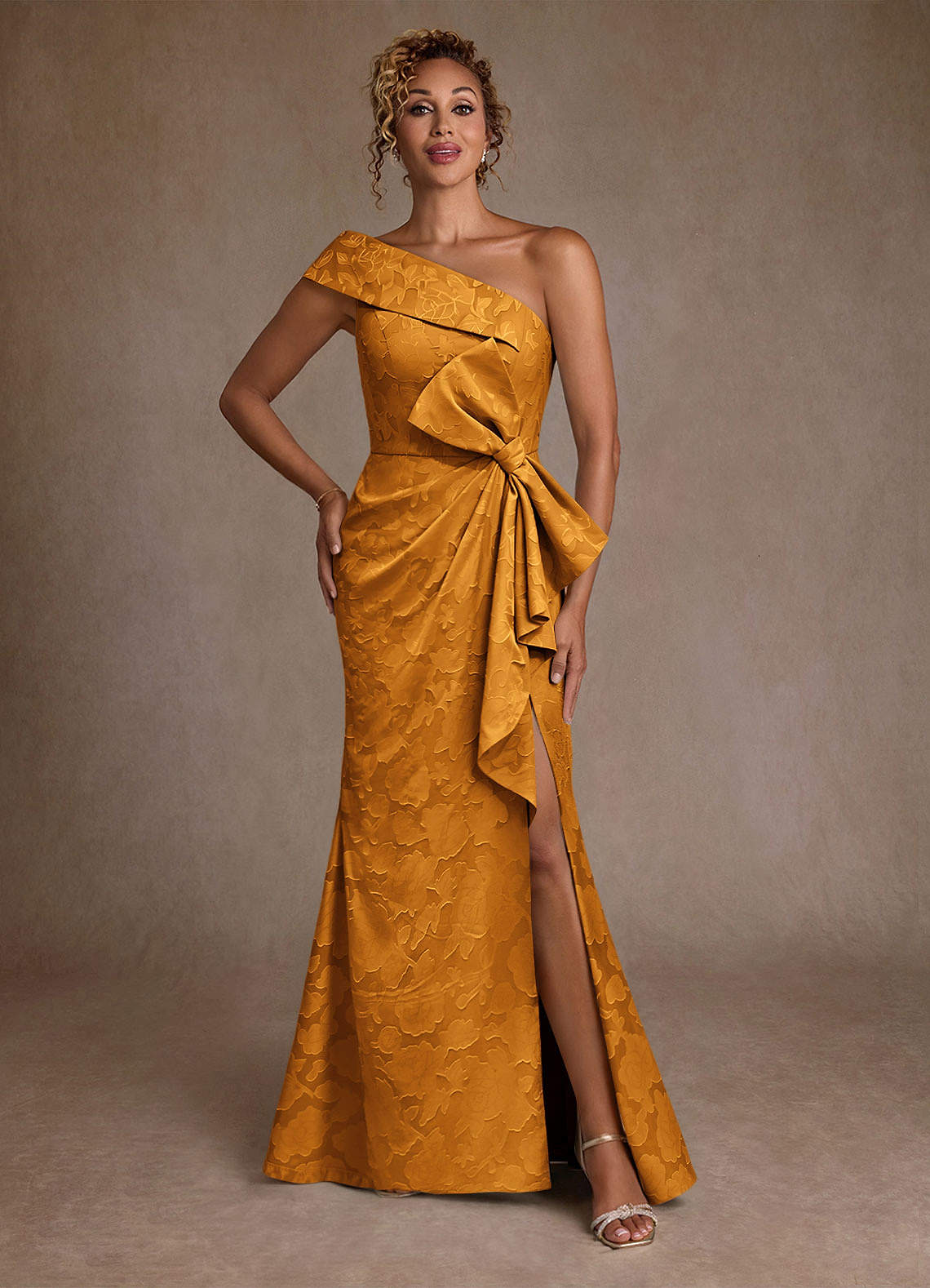 Meerjungfrau-Linie One-Shoulder Blumen-Burnout Kleid Butterscotch