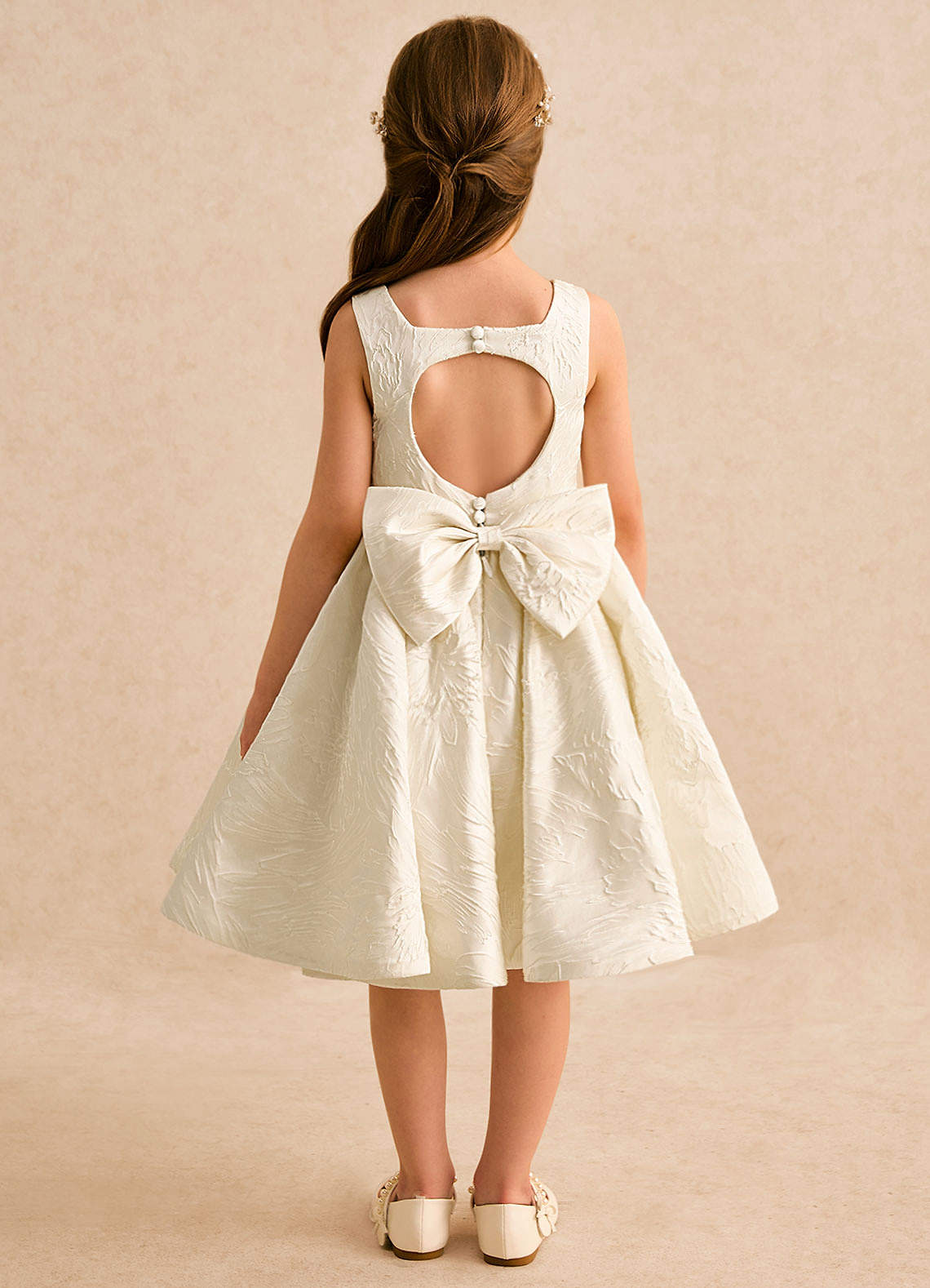 A-Linie Schleifen Blumen-Jacquard Kleid Antikweiß