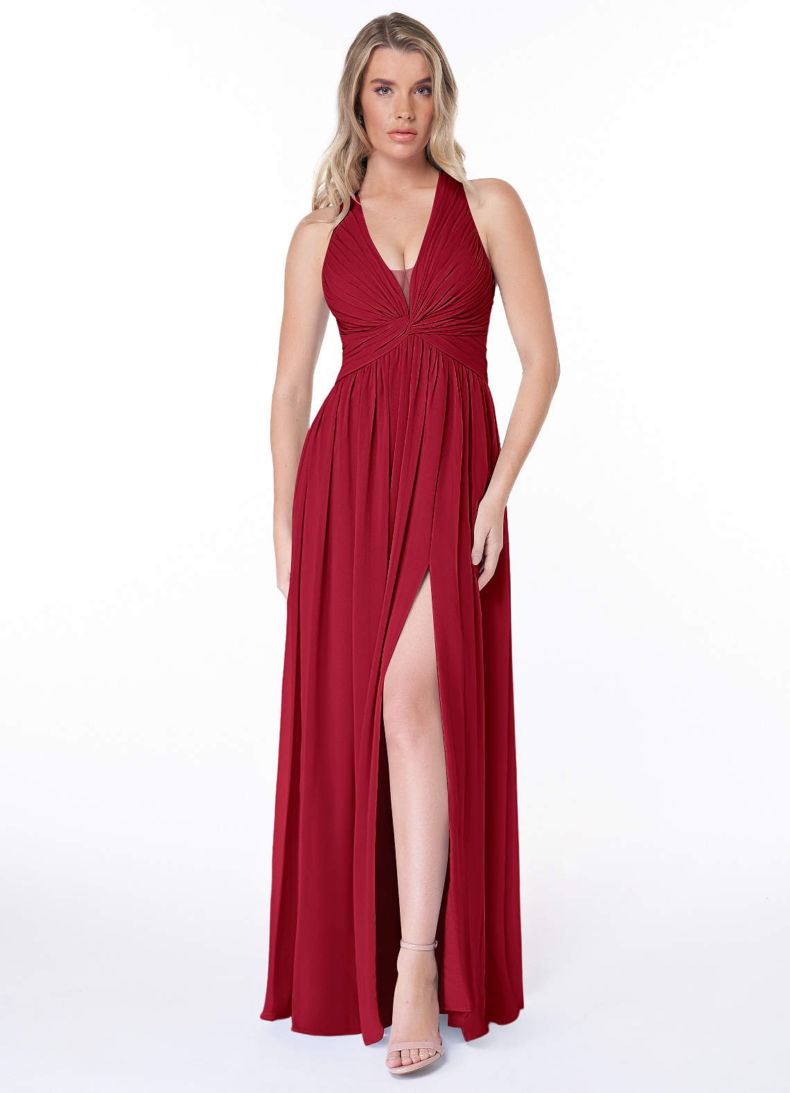 A-Linie Plissee Chiffon Kleid Scharlachrot