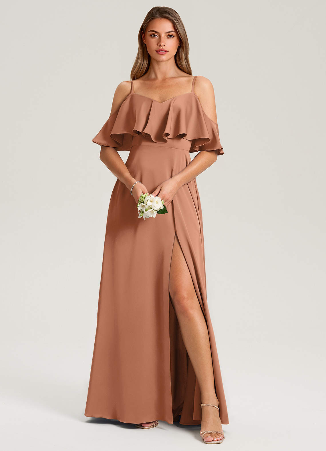 A-Linie Schulterfrei Stretch-Satin Kleid Bronzer