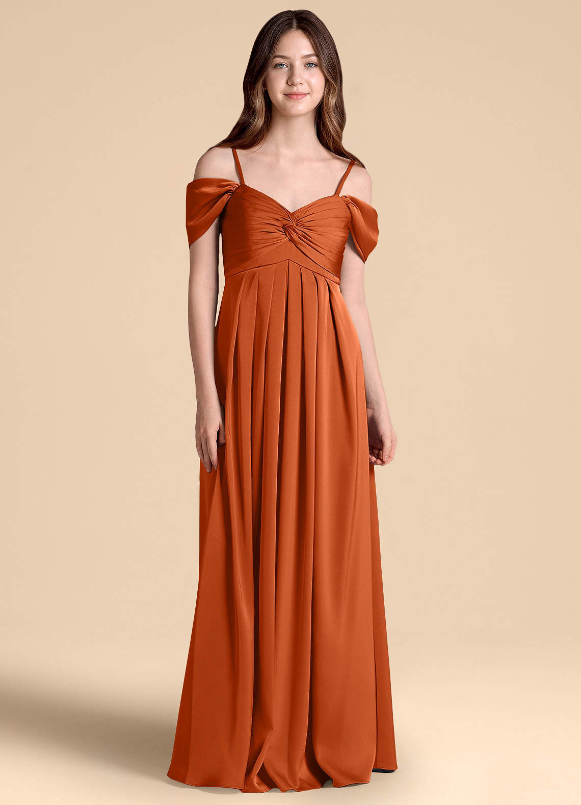 A-Linie Schulterfrei Stretch-Satin Kleid Gebranntes Orange