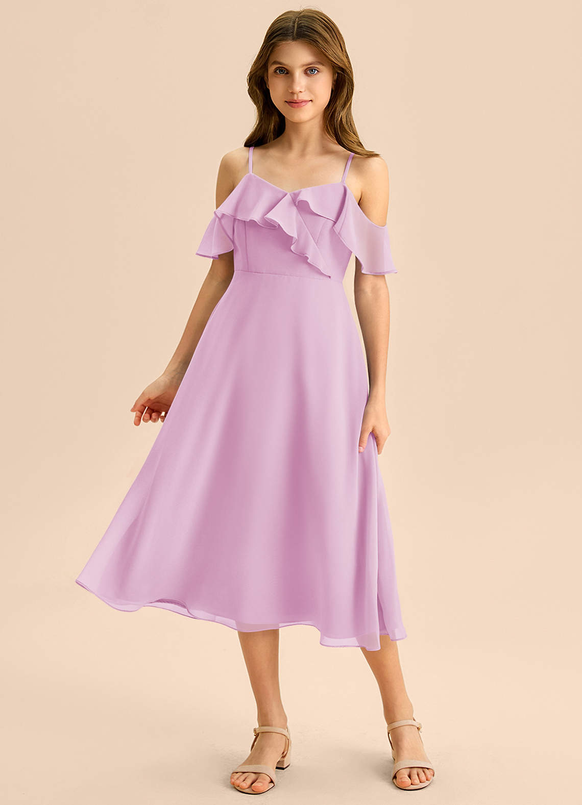 A-Linie Schulterfrei Chiffon Kleid Bonbonrosa