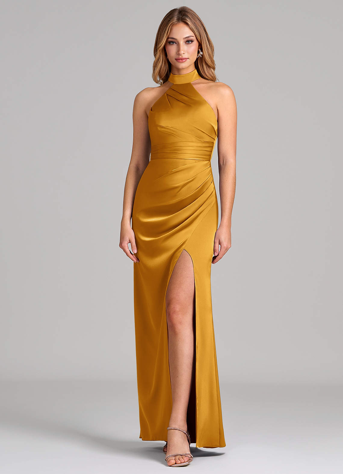 Etui Plissee Stretch-Satin Kleid Butterscotch