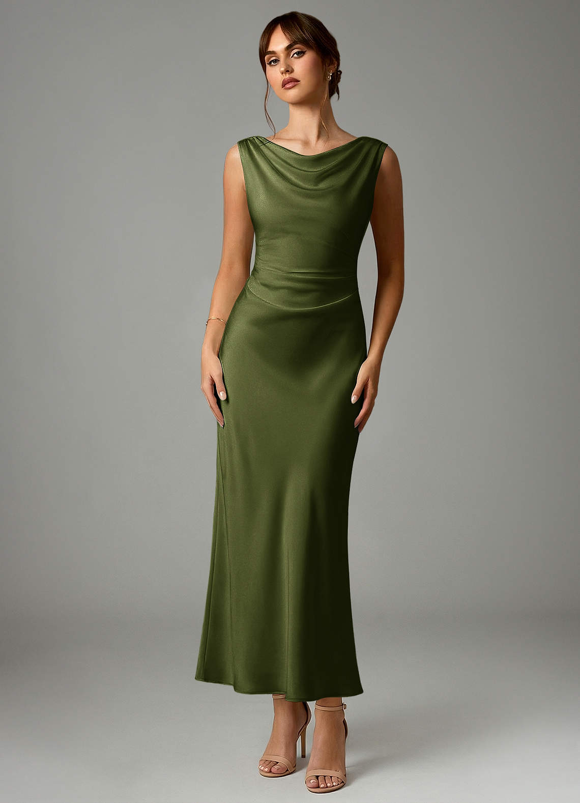 Meerjungfrau-Linie Plissee Stretch-Satin Kleid Olivgrün