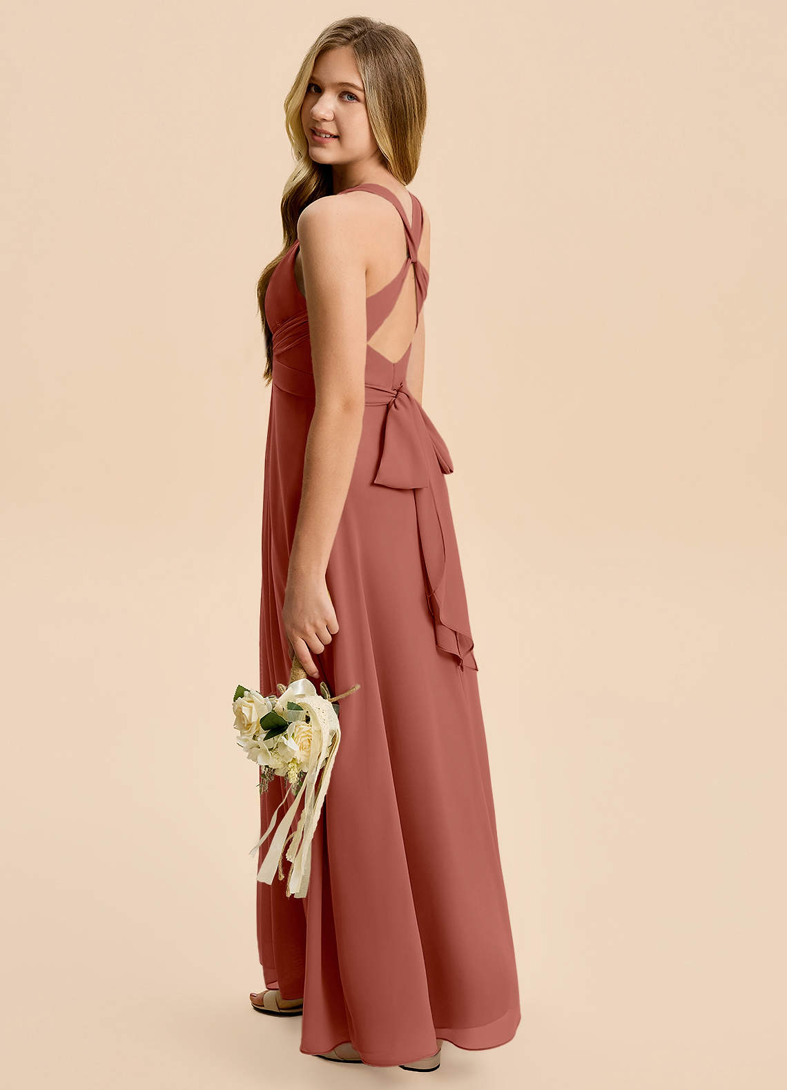 A-Linie Plissee Chiffon Kleid Rotbraun