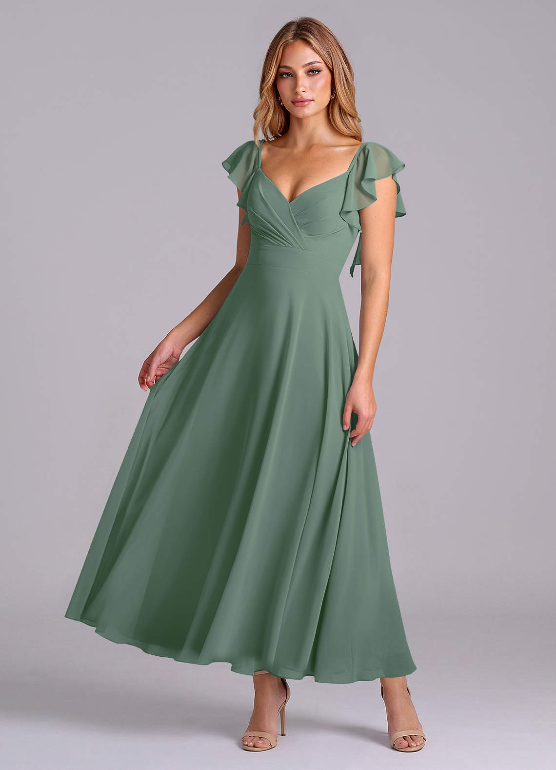 A-Linie Gestreift Chiffon Kleid Eukalyptus