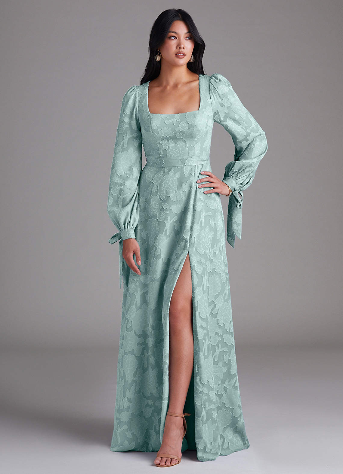 A-Linie Langarm Blumen-Burnout Kleid Nebel