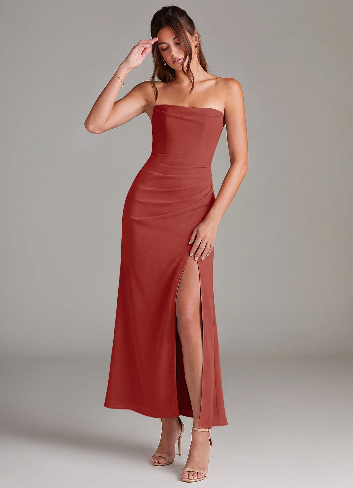 Wandelbar Meerjungfrau-Linie Schulterfrei Chiffon Kleid Terrakotta