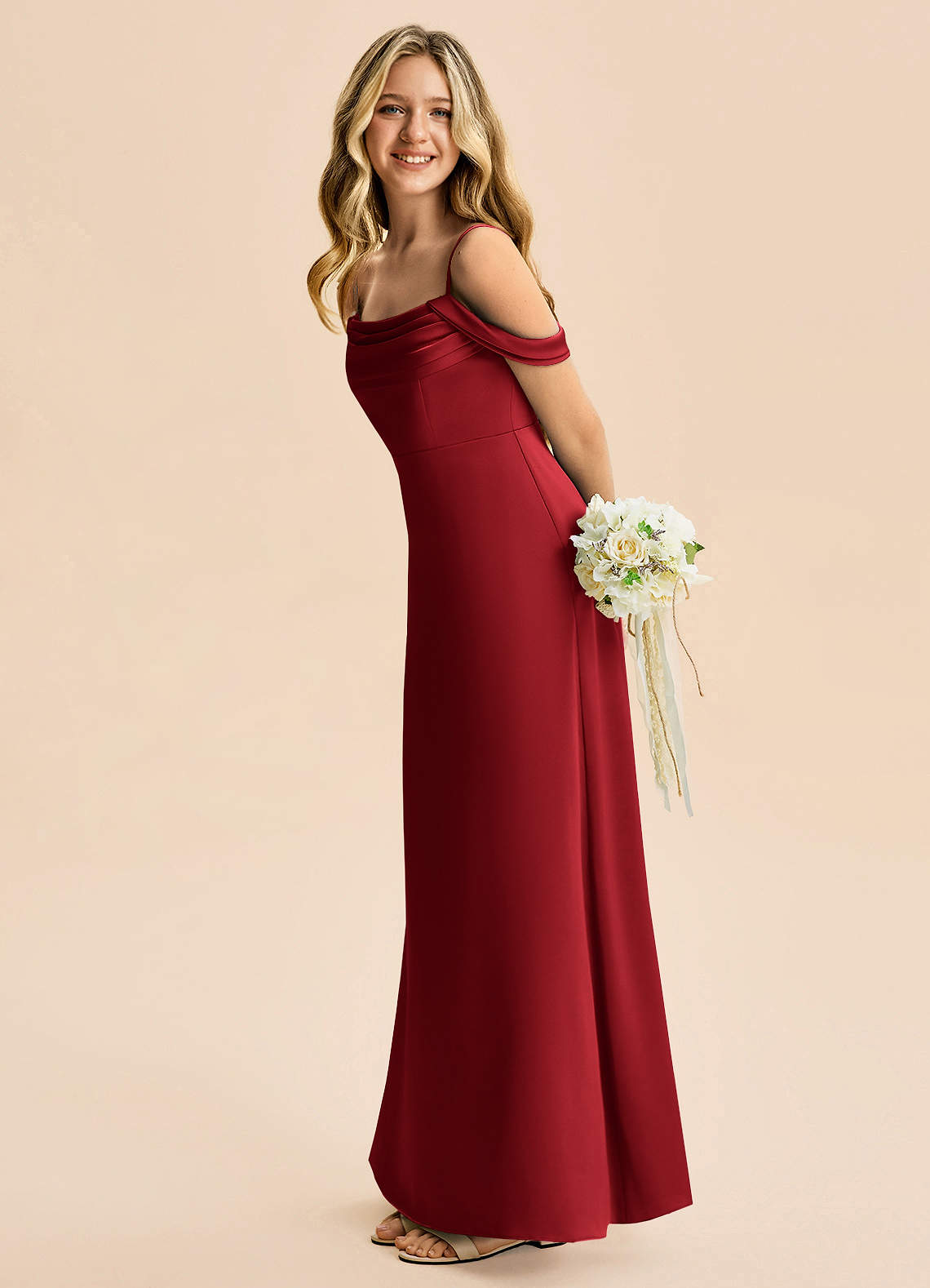 A-Linie Schulterfrei Stretch-Satin Kleid Granatapfelrot