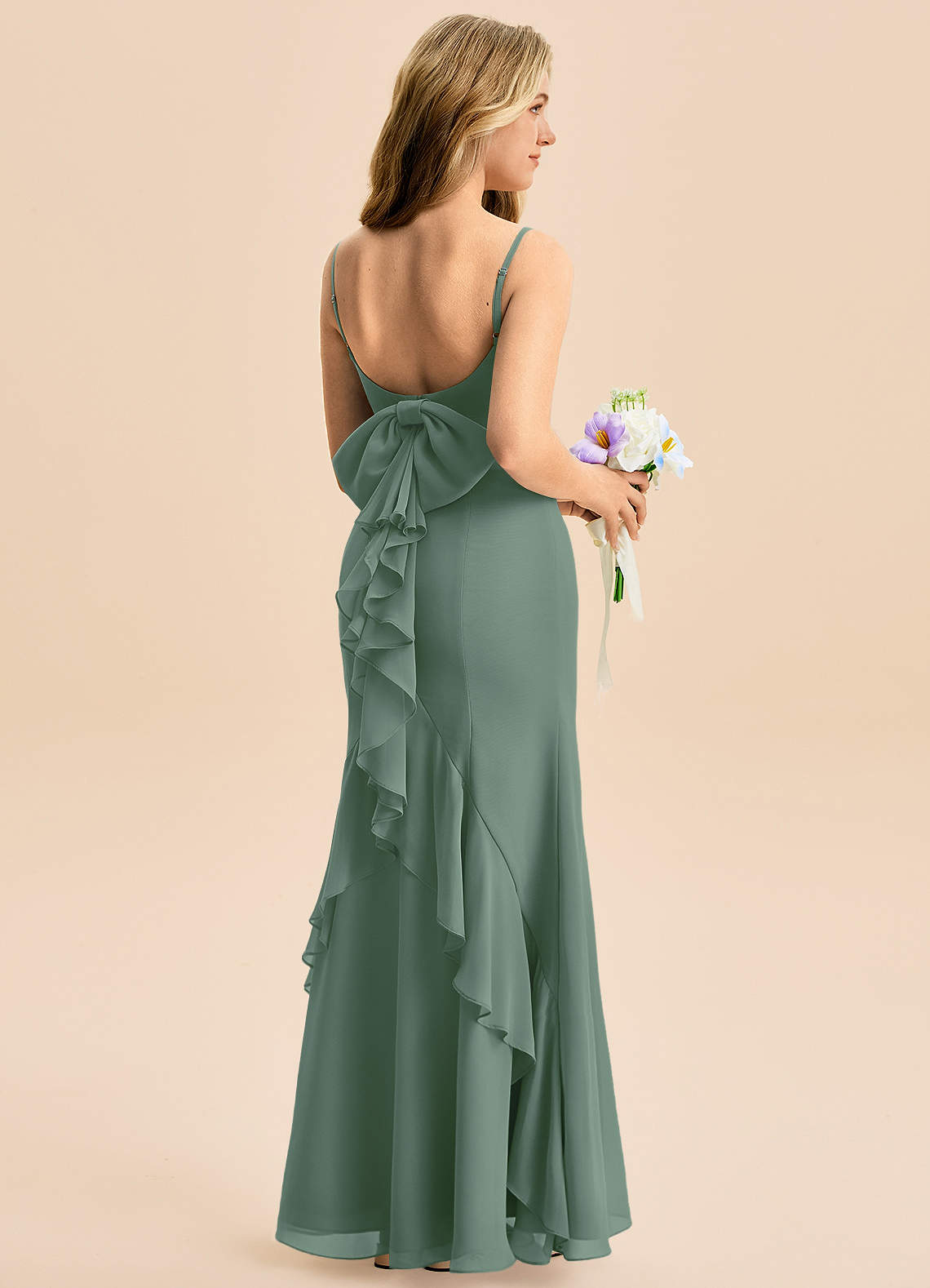 Meerjungfrau-Linie Schleifen Chiffon Kleid Eukalyptus
