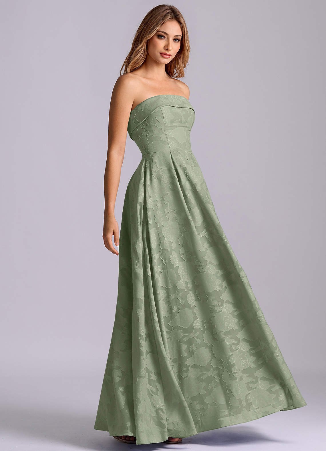 A-Linie Schulterfrei Blumen-Burnout Kleid Agave