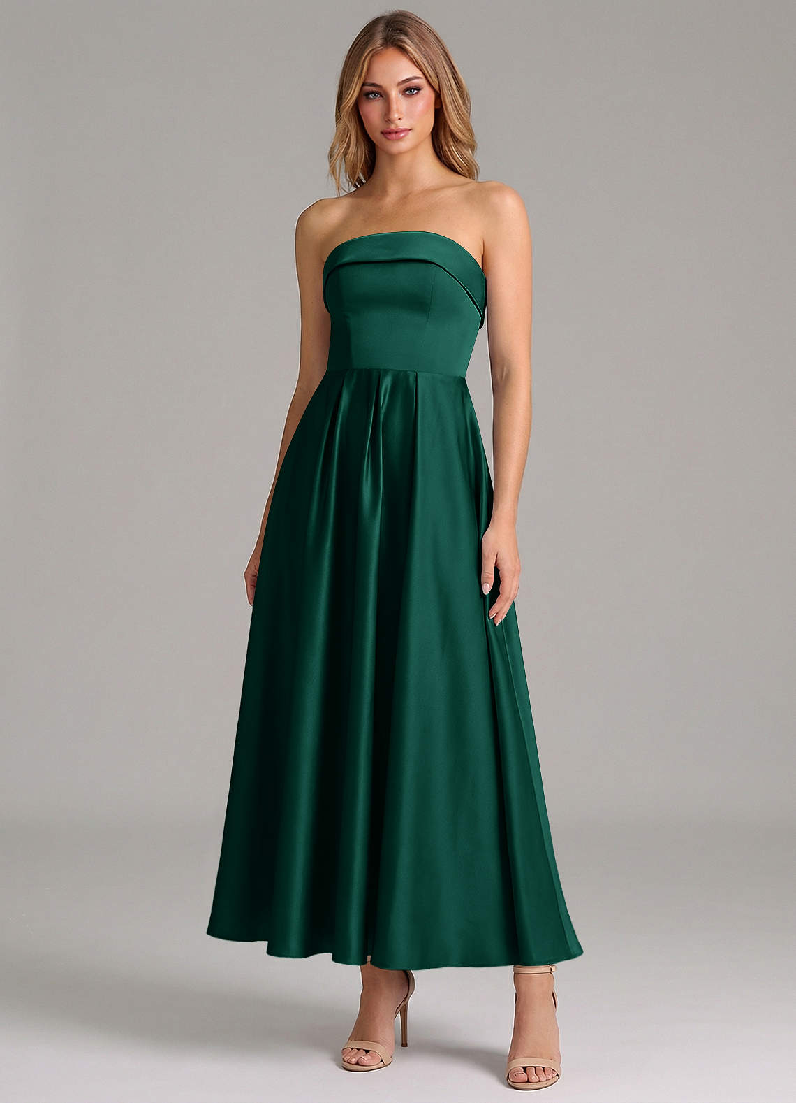 A-Linie Plissee Stretch-Satin Kleid Smaragd
