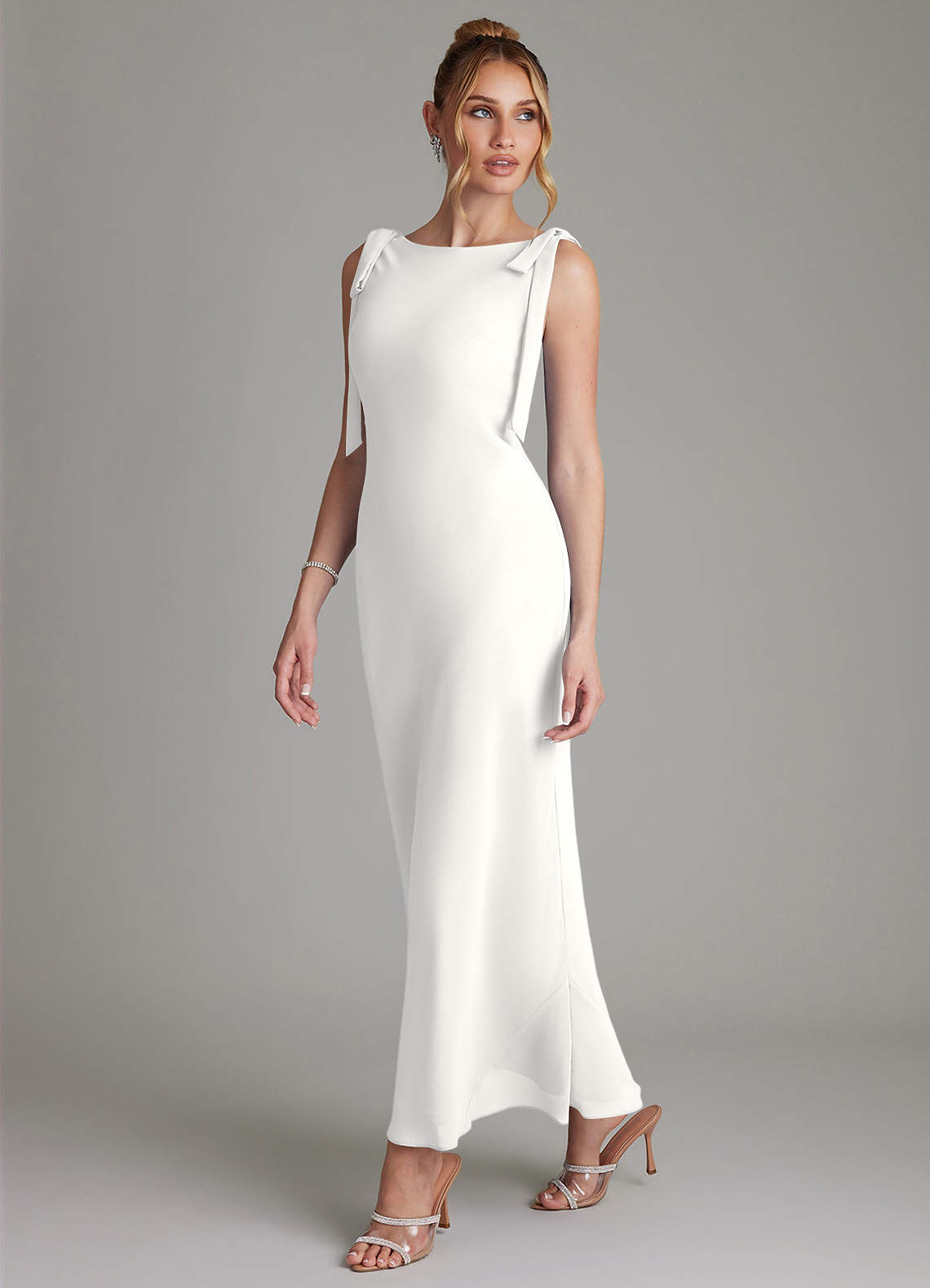 Meerjungfrau-Linie Schleifen Chiffon Kleid Weiß