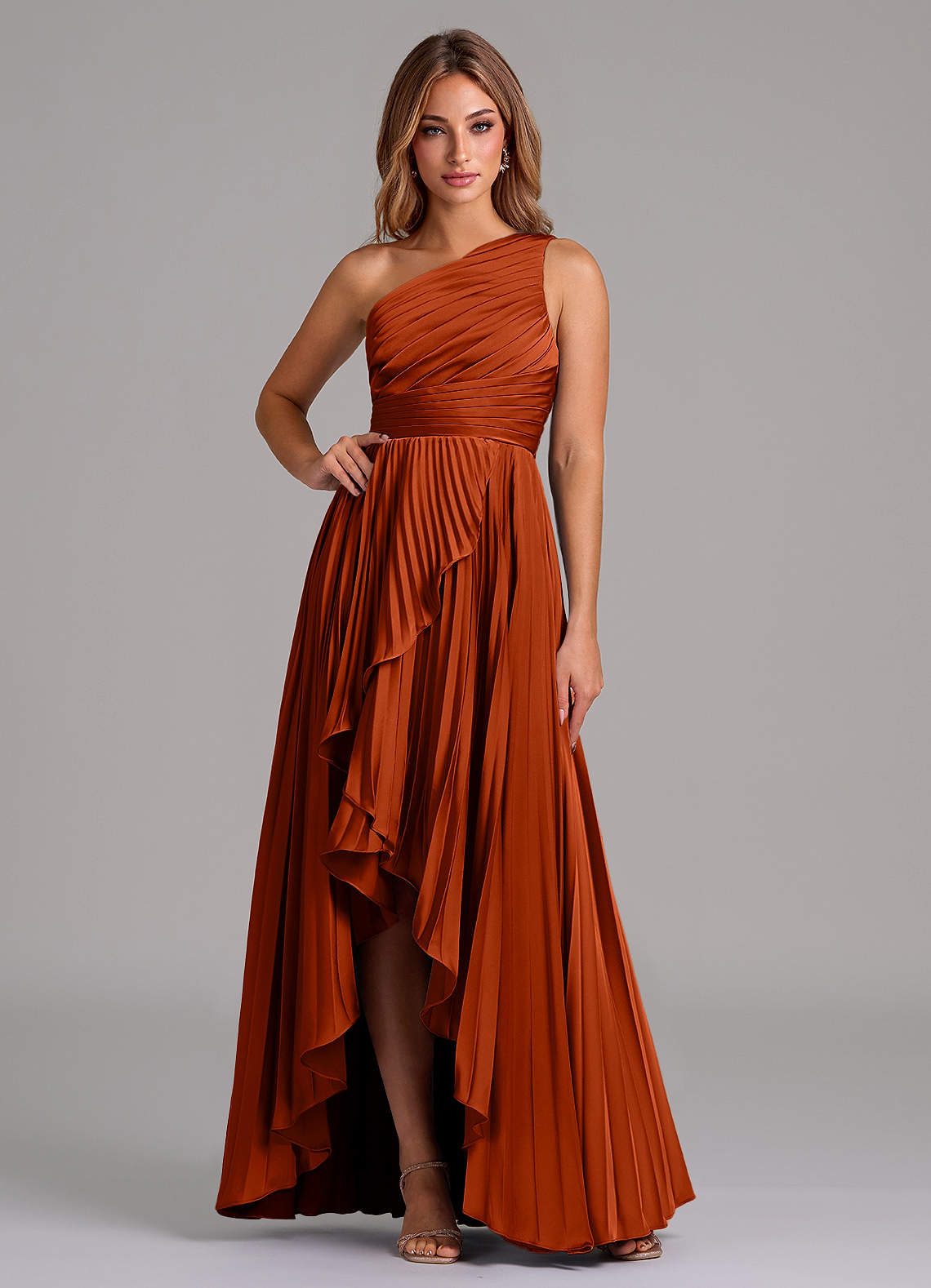 A-Linie One-Shoulder Stretch-Satin Kleid Paprika