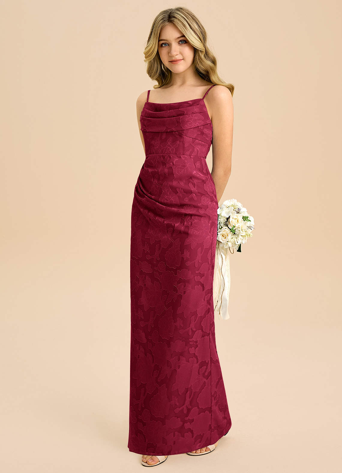 Etui Plissee Blumen-Burnout Kleid Burgunderrot