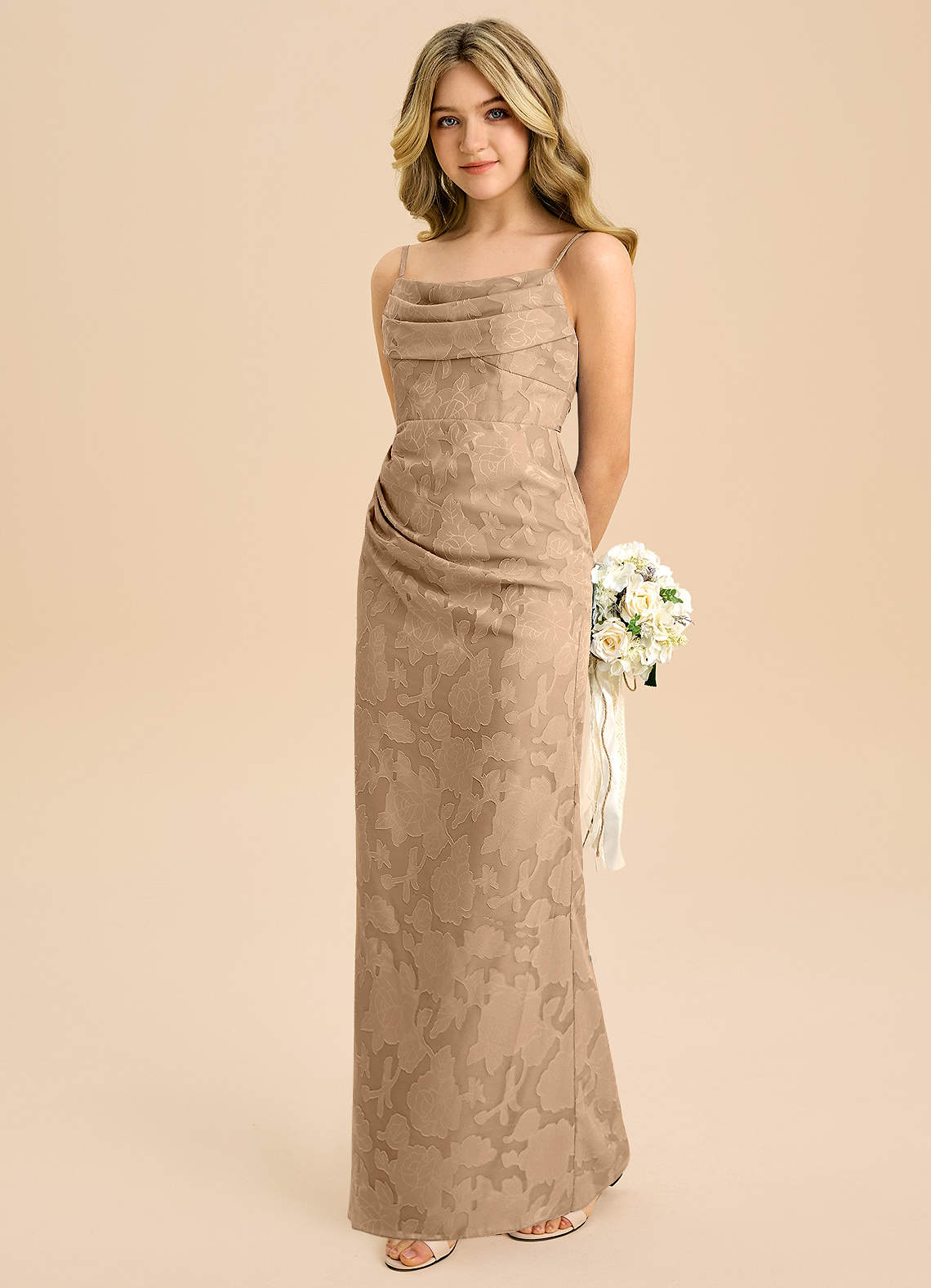 Etui Plissee Blumen-Burnout Kleid Champagner