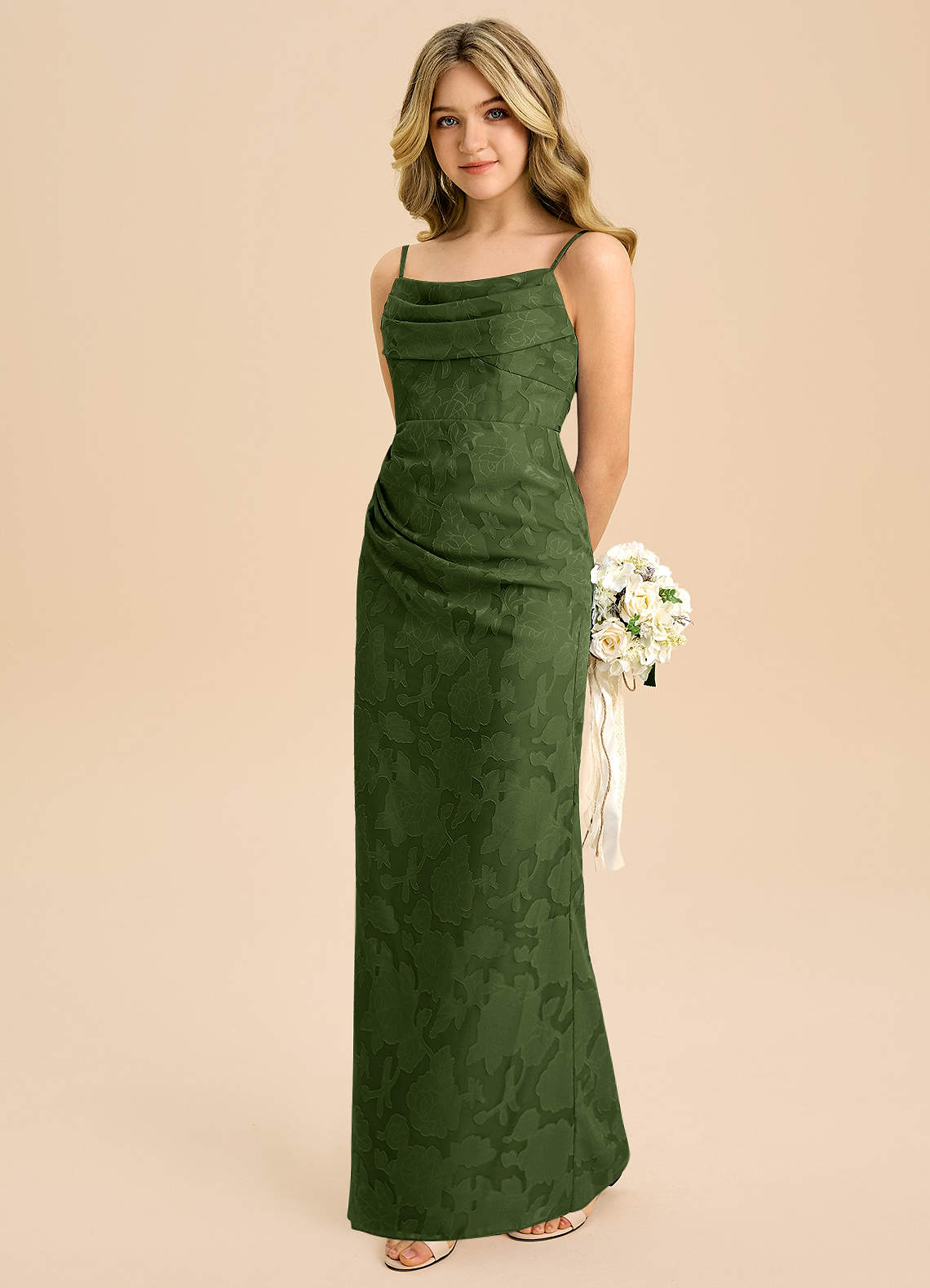 Etui Plissee Blumen-Burnout Kleid Olivgrün