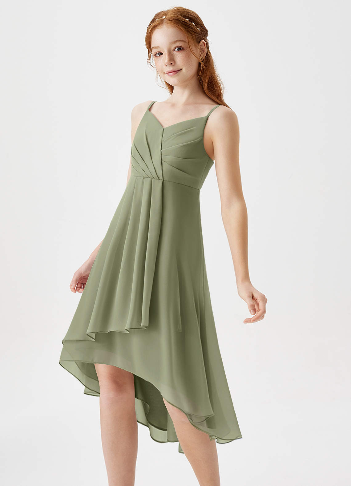 A-Linie Plissee Chiffon Kleid Pistazie