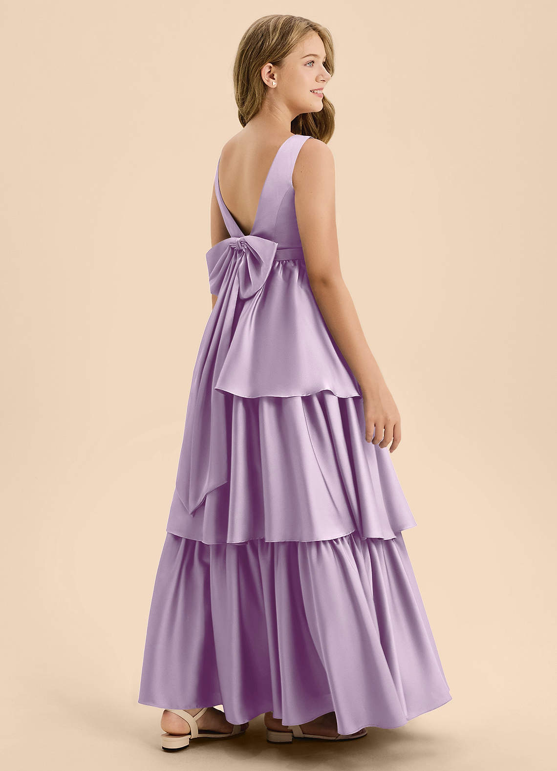 A-Linie Schleifen Stretch-Satin Kleid Frostiges Flieder