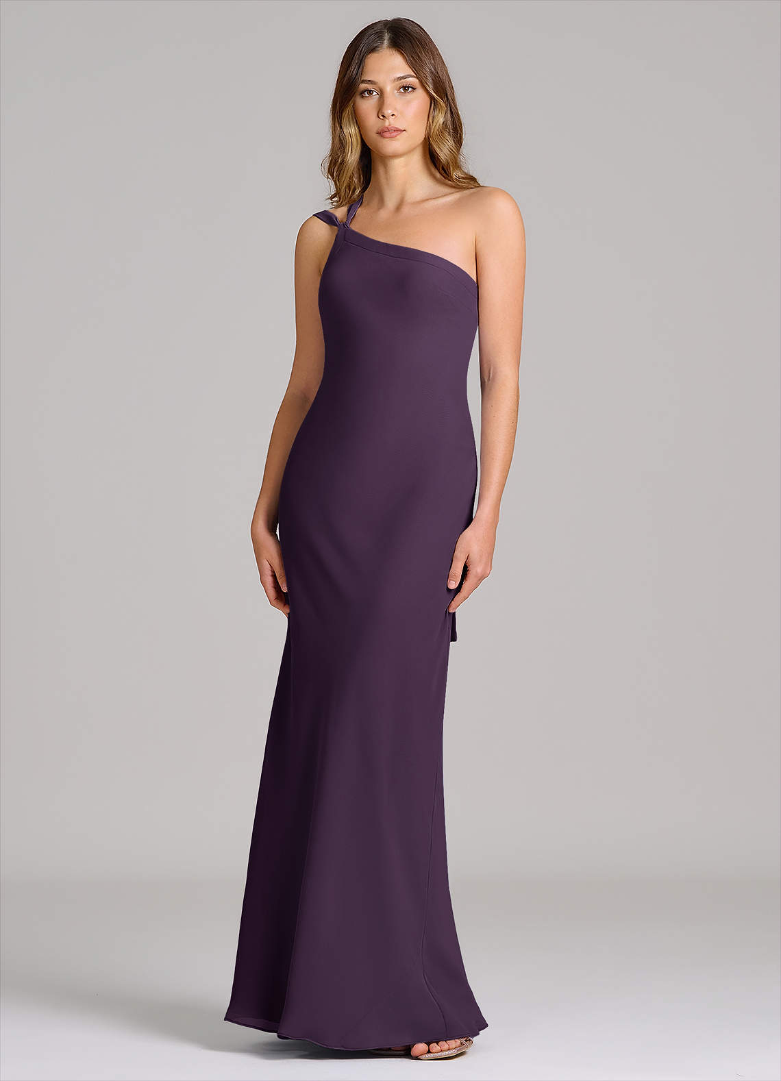 Etui One-Shoulder Chiffon Kleid Pflaume