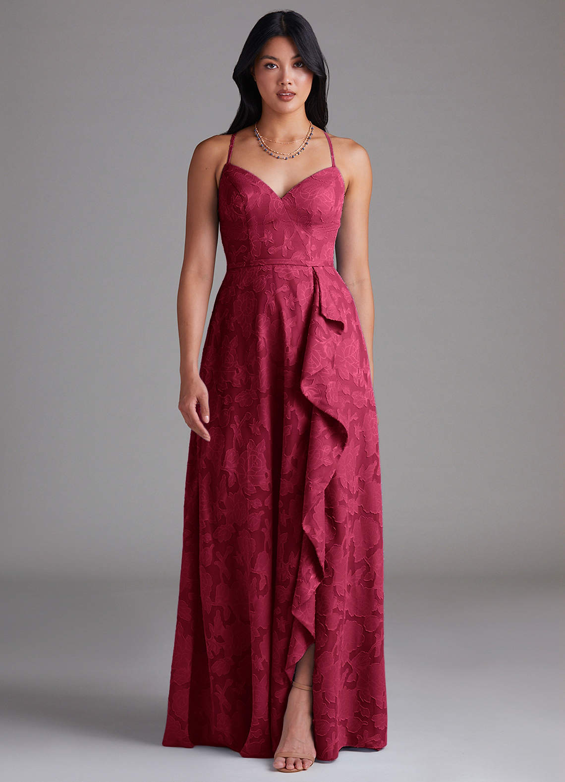 A-Linie Herzausschnitt Blumen-Burnout Kleid Burgunderrot