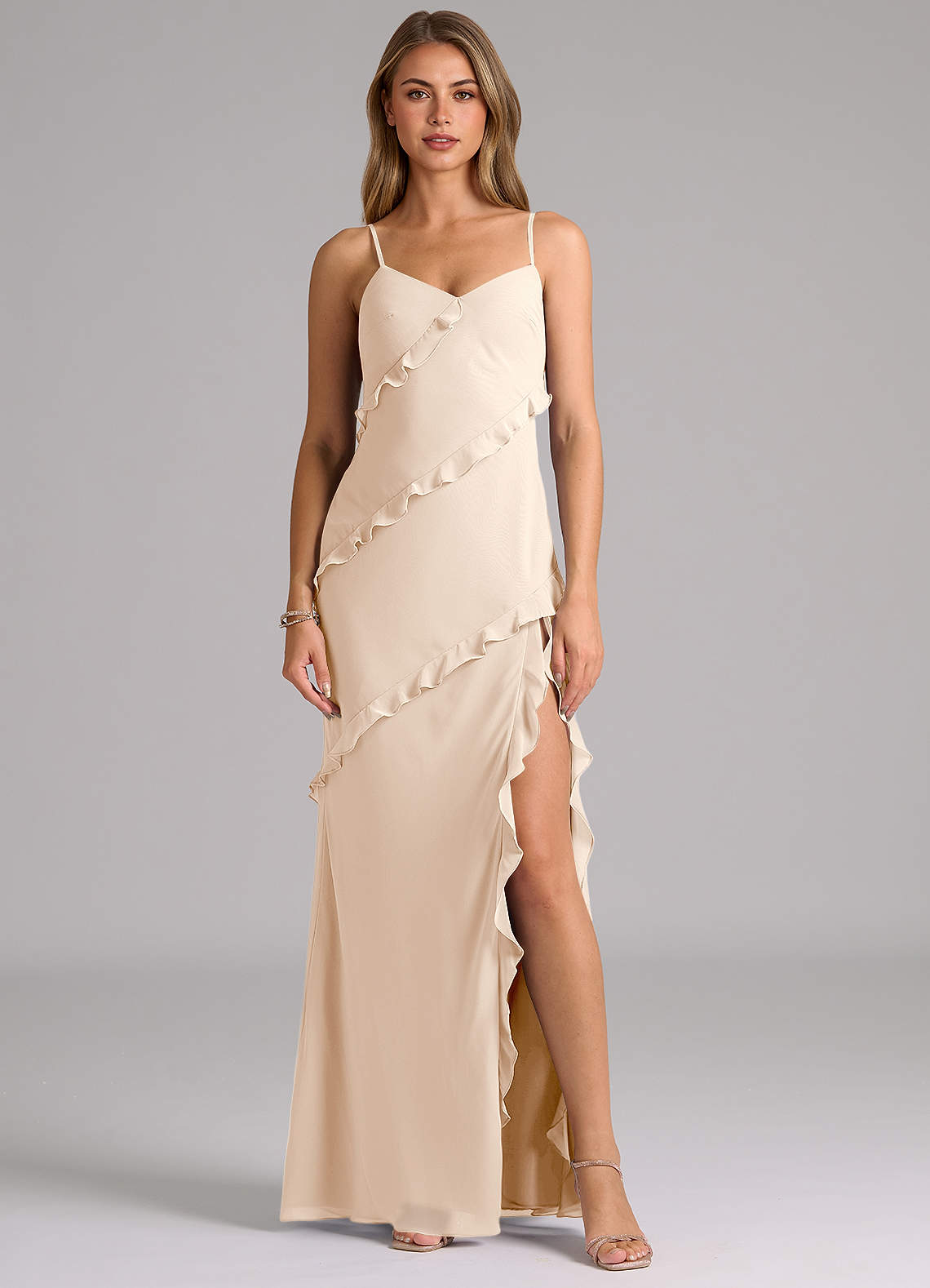 Meerjungfrau-Linie Gestreift Chiffon Kleid Alabaster Weiß