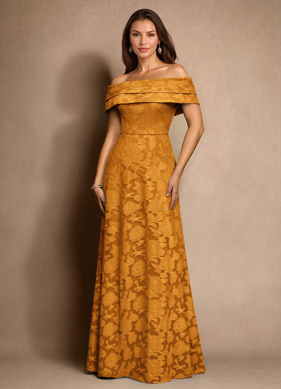 A-Linie Plissee Blumen-Burnout Kleid Butterscotch