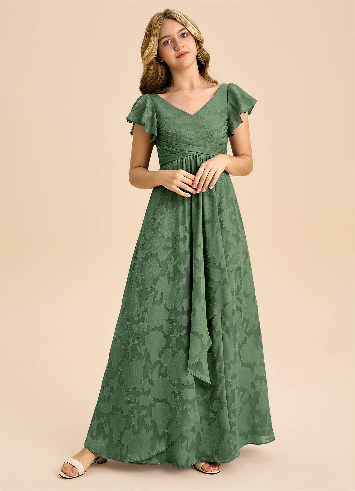 A-Linie Plissee Blumen-Burnout Kleid Eukalyptus