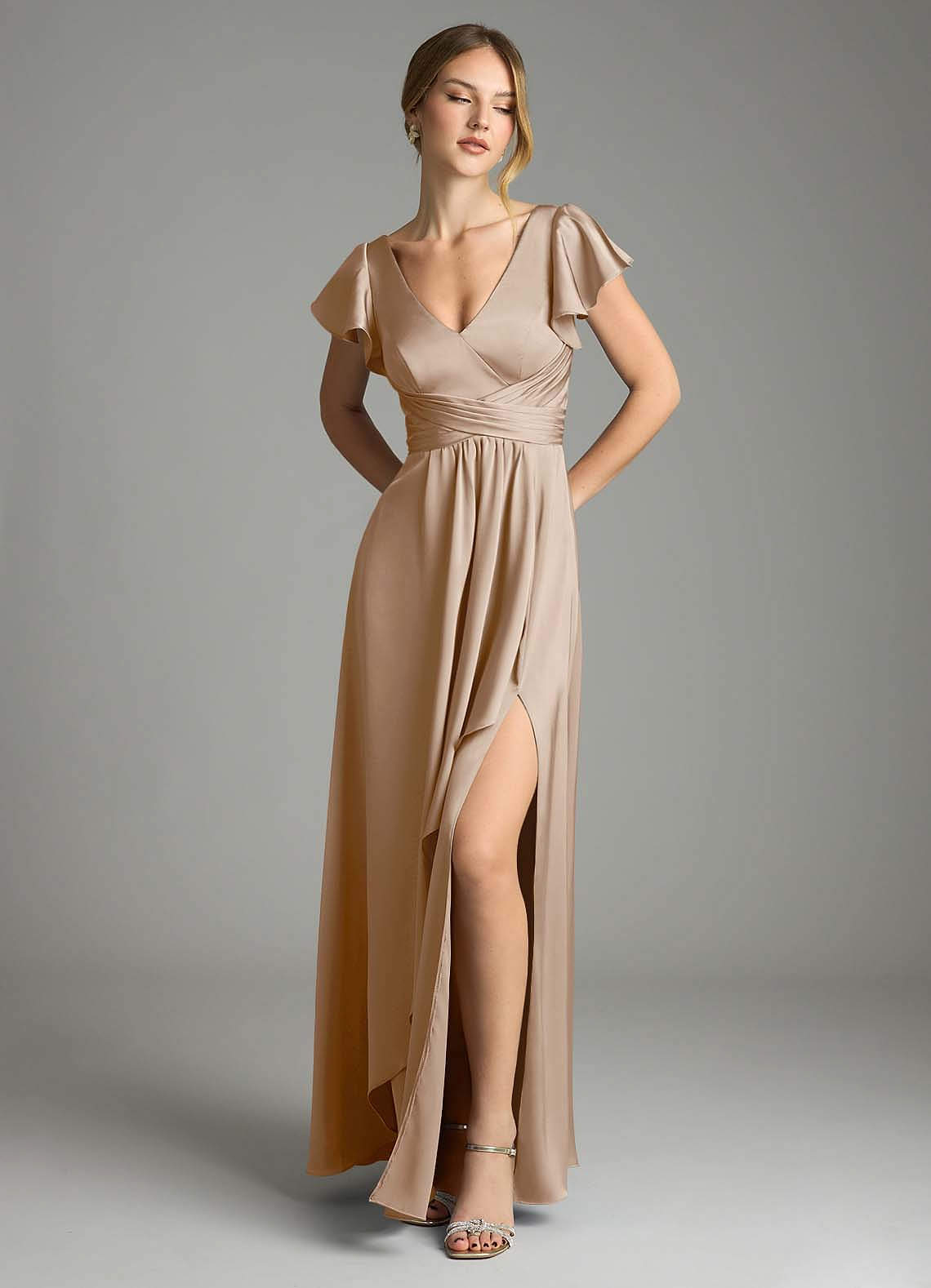 A-Linie Stretch-Satin Kleid Taupe